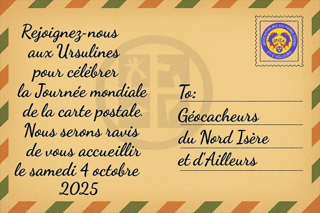Les G.N.I.A sont heureux de vous inviter à leur événement spécial Journée mondiale de la Carte Postale le samedi 4 octobre 2025 …